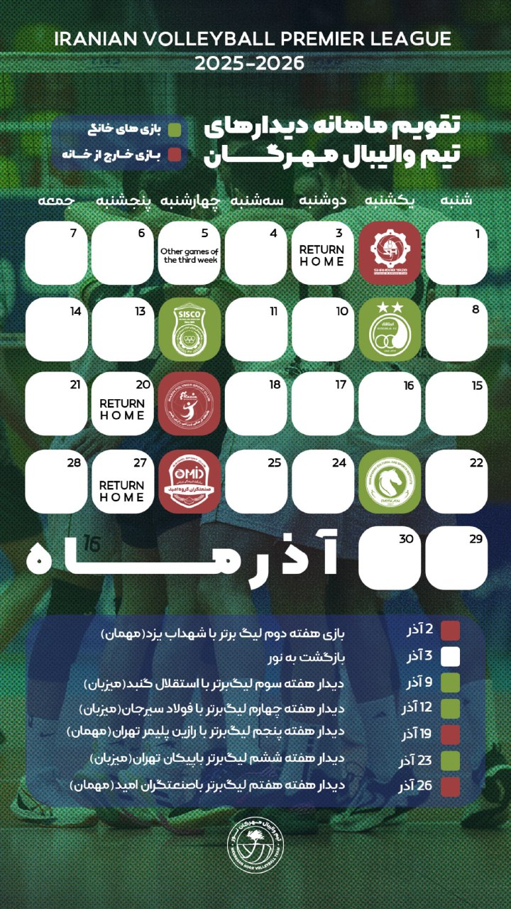 تقویم آذرماه ۱۴۰۴ تیم مهرگان نور